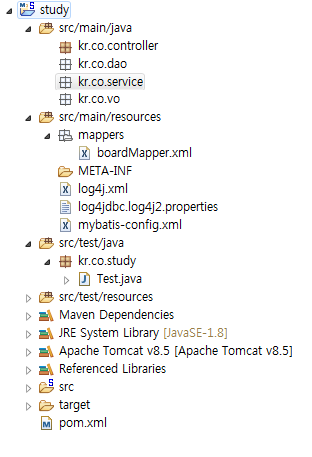 아마 처음에 프로젝트만들때 패키지를 kr.co.study로 만드셨다면 kr.co.study로 설정 되어있으실겁니다.