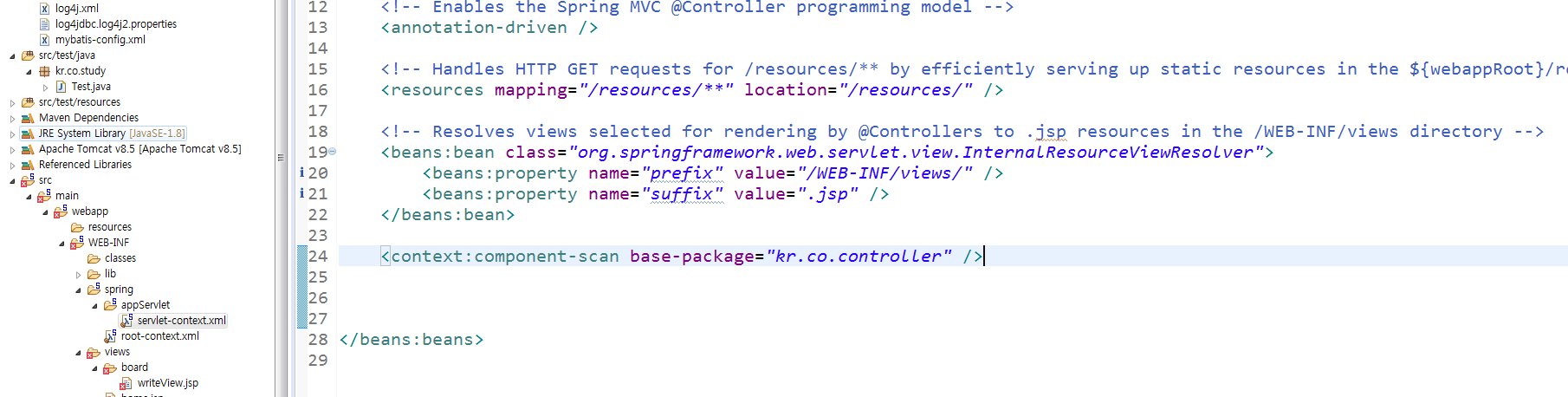 src/main/webapp/spring/appServlet/servlet-context.xml로 들어갑니다.